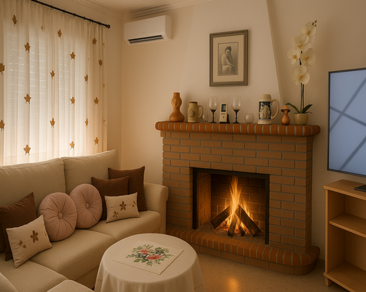 Destaca especialmente la chimenea de obra, perfecta para disfrutar del calor del fuego en invierno y dar un toque tradicional a la estancia. Además, la planta baja cuenta con aire acondicionado, lo que garantiza una temperatura confortable todo el año.